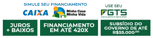 Com o Programa MINHA CASA MINHA VIDA você poderá ter financiamento pela Caixa Econômica Federal com juros mais baixos, subsídio do Governo que permite descontar um valor importante do imóvel e você também poderá complementar a compra com seu FGTS.